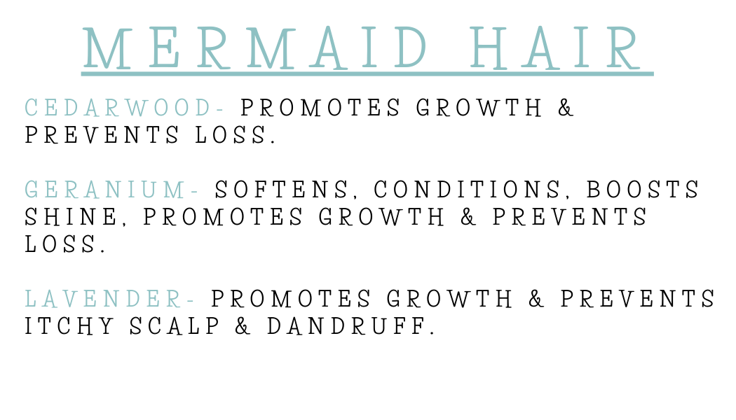 I LOVE this product, it’s what made me a true believer in the power of essential oils! I use Mermaid Hair everyday after washing, I mist while wet, comb through and style as usual. I also reapply all throughout the day as a refresher and I use it prior to drying or curling as a way to protect hair from heat damage. The combined scent of lavender, geranium, rosemary and cedarwood is light, natural and uplifting, so this spray doubles as my favorite perfume and mood booster as well! The continuous mist bottle is perfect for delivering all over light coverage. This oil blend has worked wonders on the overall health of my hair, especially as I’ve aged. When using this product, I notice my hair feels stronger, thicker, shinier and generally healthier. I notice less hair loss, less breakage and less frizz. And, again the smell is simply divine! I highly recommend this magic potion, you will not be disappointed, you’ll be hooked like me!!✨✨